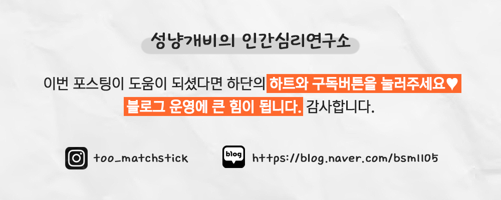 안녕하세요. 인간심리연구소의 성냥개비입니다:)